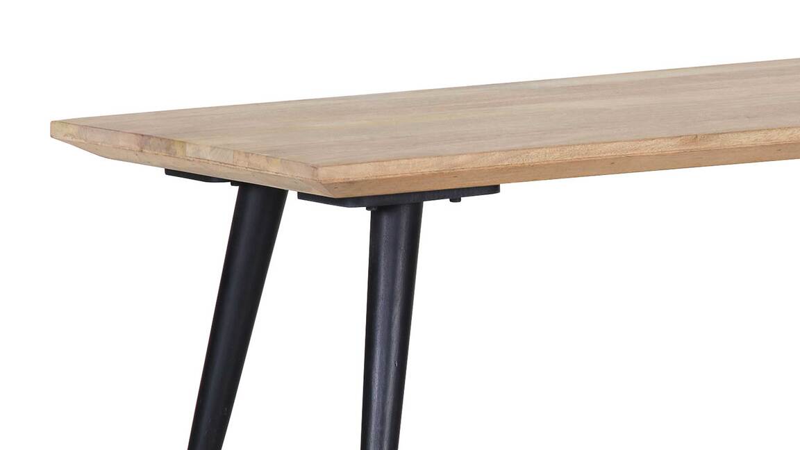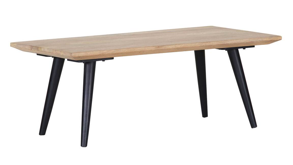 Der Couchtisch Liam präsentiert sich im kreativen Vintage-Look. Hergestellt aus gebeiztem und lackiertem Mangoholz, verleiht die Tischplatte dem Wohnzimmertisch eine warme und gemütliche Ausstrahlung. Schlanke schwarze Metallfüße runden das außergewöhnliche Design stimmig ab und wissen genauso wie die Holzplatte auch qualitativ voll zu überzeugen.