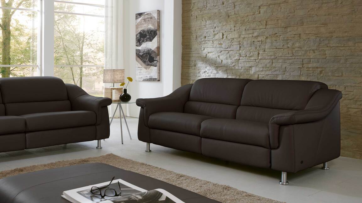 Mit dem Comfortmaster 2-Sitzer 60N aus der Serie 1320 erhalten Sie ein individuelles Sitzelement für Ihr Wohnzimmer. Die Couch mit pflegeleichtem Longlife-Lederbezug im Farbton Schoko verfügt über Kopfteile, die individuell verstellbar sind. Die gebürsteten Metallfüße setzen sich kontrastreich ab und sorgen für einen sicheren Stand.