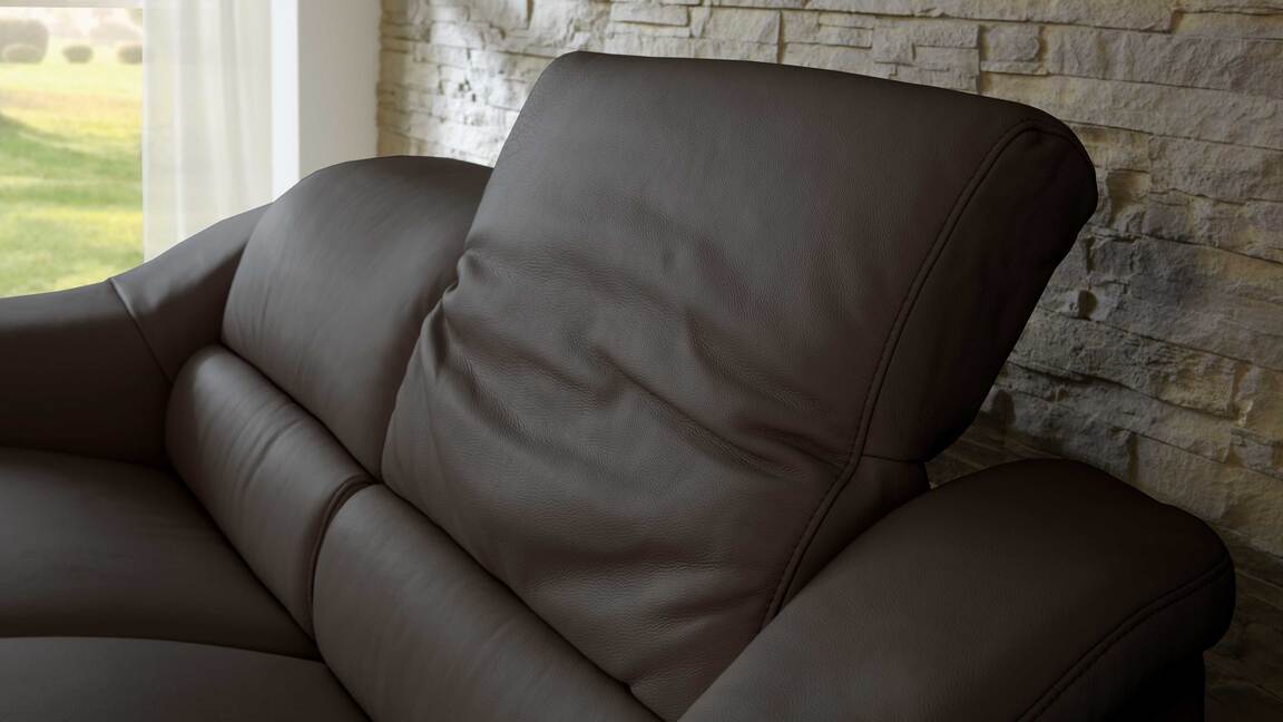 Die bequeme Ledercouch hat eine Größe von ca. 172 x 86 x 106 cm (BxHxT) und ist in zwei Sitzhöhen erhältlich. Zudem können Sie zwischen verschiedenen Sitzqualitäten wählen und das Ledersofa so an Ihr persönliches Komfortbedürfnis anpassen. Die Couch hat eine Sitzhöhe von ca. 44 cm und eine Sitztiefe von ca. 55 cm. Die mittelfeste Sitzhärte Superlastic med ist ebenso inklusive wie die manuelle Kopfteilverstellung. Alle Rückenlehnen sind mit komfortablem Formasoft Kaltschaum gepolstert. Darüber hinaus ist die Rückseite im gleichen Leder bezogen - so lässt der Zweisitzer frei in den Raum stellen.