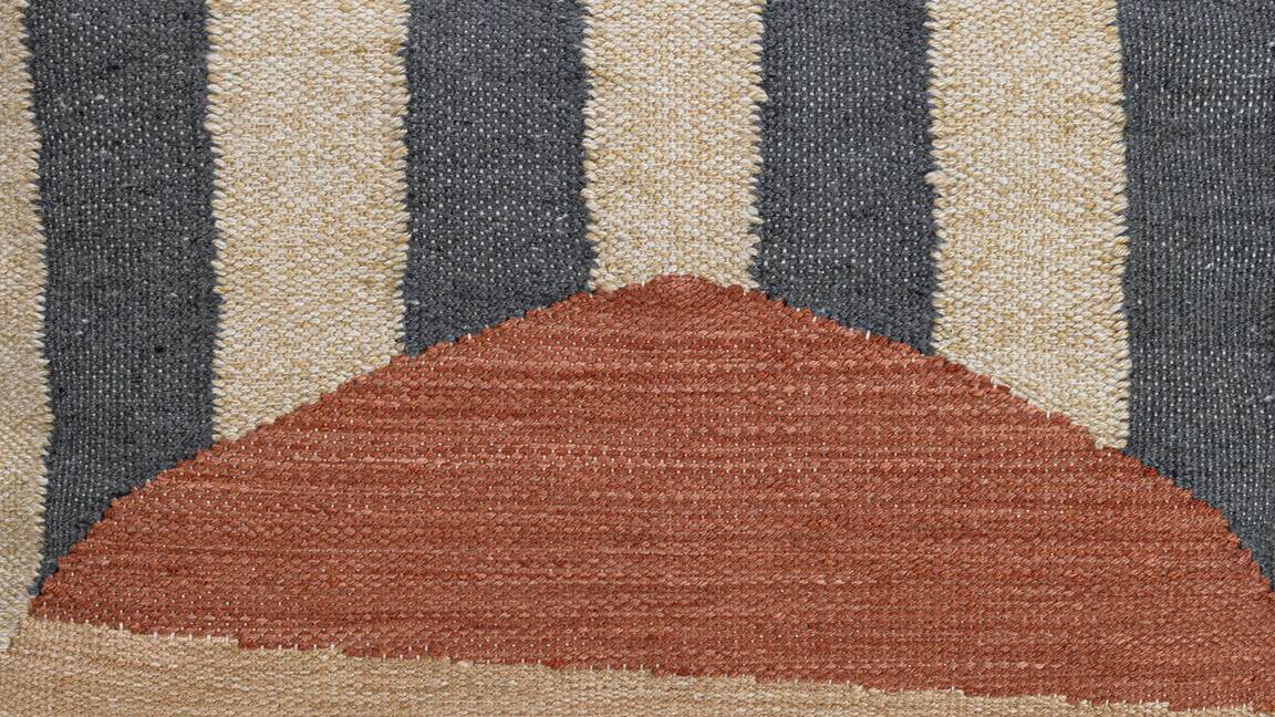 Vorderseite in Blau, Terracotta und Cremeweiß gemustert, 100 % Polyester
