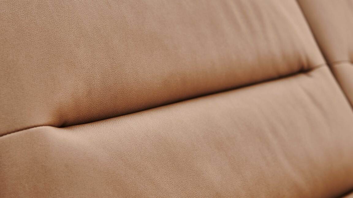 Die Wohnlandschaft aus dem edlen Modulmaster Programm MM-ZE1148 kombiniert den camelfarbenen Mikrofaserbezug Galero mit einer beigefarbenen Doppel-Kontrastnaht und strahlt moderne Eleganz mit warmem Charme aus. Stilvoll abgerundet wird die Eckgarnitur durch die puristisch mattschwarzen Metallfüße Z002-M01. Die Rückseiten sind serienmäßig im Originalstoff bezogen, was die Hochwertigkeit der Optik noch einmal verstärkt.