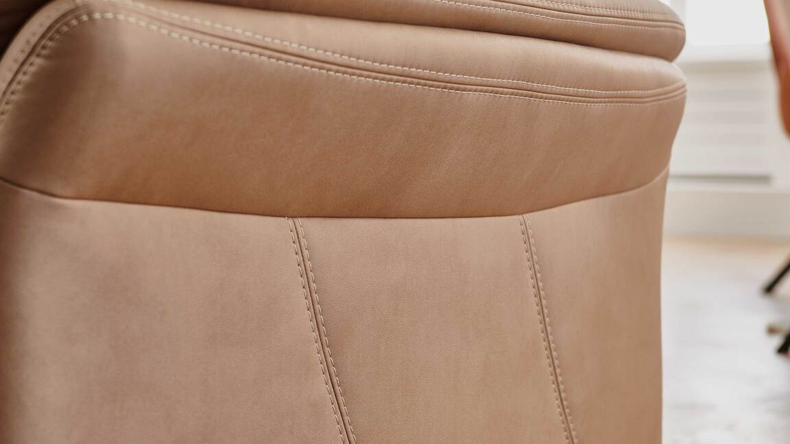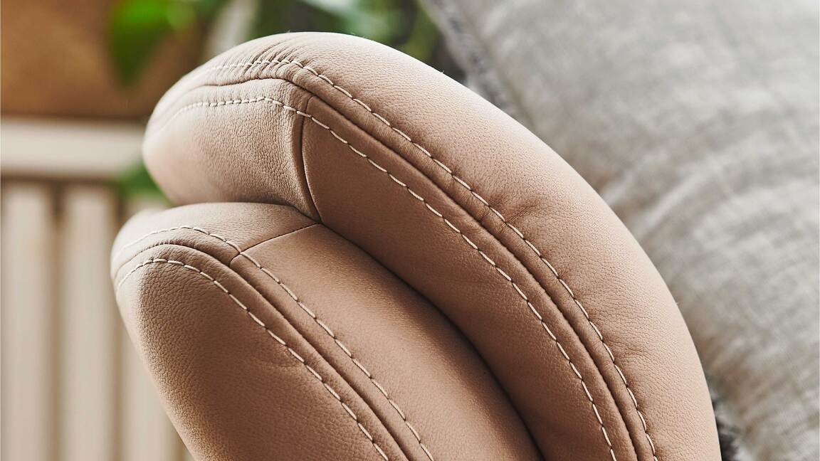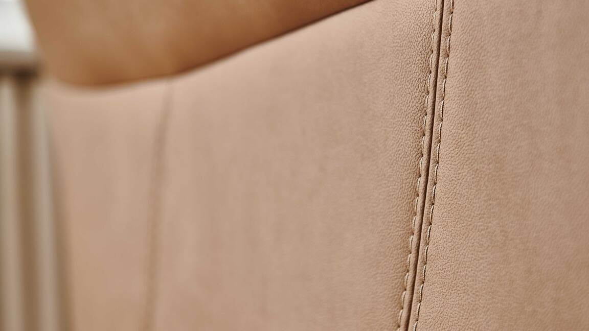 Das Programm bietet eine beeindruckende Typen- und Bezugvielfalt, wobei alle Rückseiten im Originalstoff bezogen sind und die Bezüge wahlweise mit oder ohne Kontrastnaht umgesetzt werden können. Überdies stehen sieben Fußvarianten, zwei preisgleiche Sitzhöhen und mit Kaltschaum, Federkern und - gegen Aufpreis - Boxspring drei Sitzqualitäten zur Wahl.