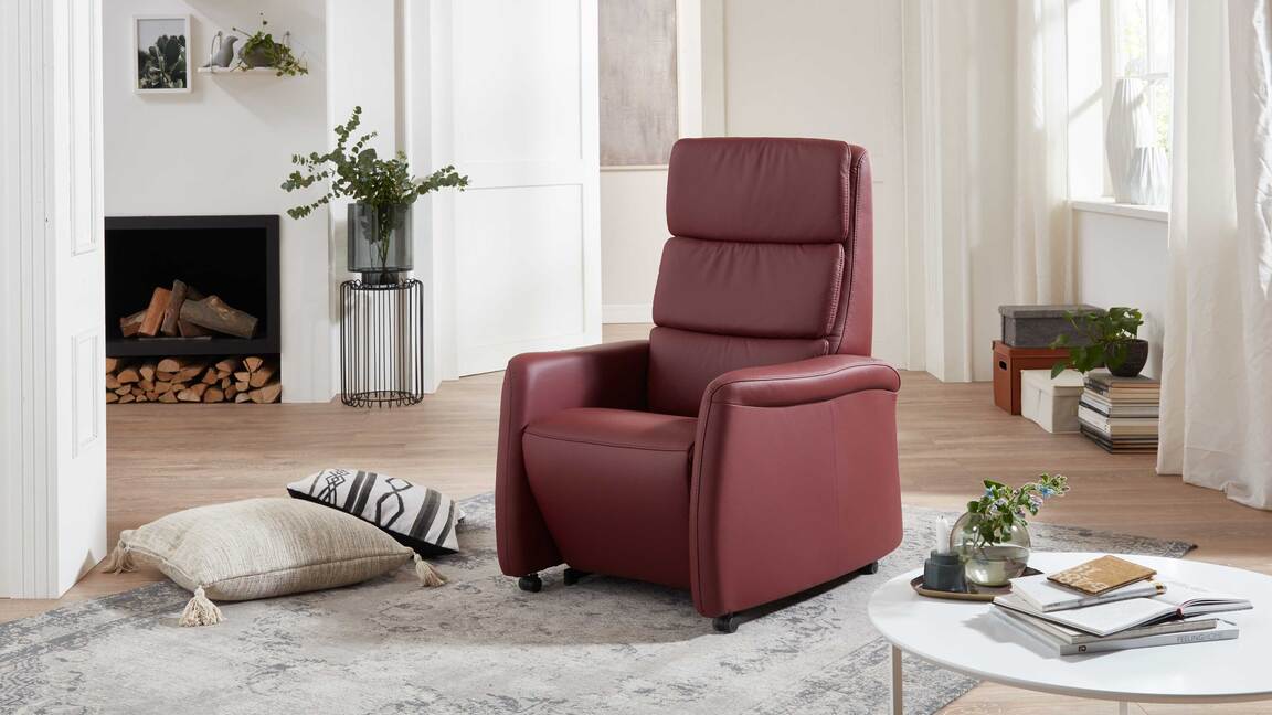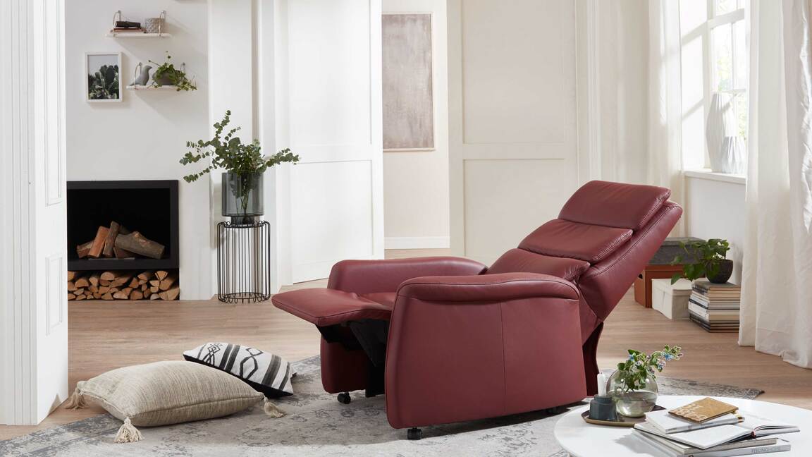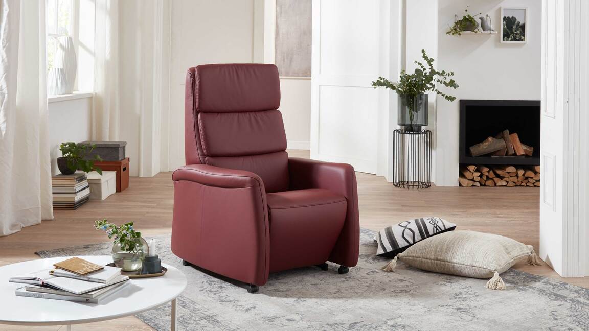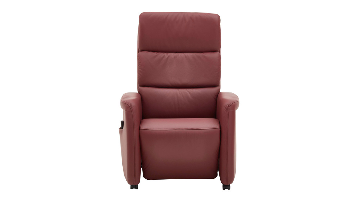 Der hochwertige Fernsehsessel mit Aufstehhilfe besticht sowohl mit einer erstklassigen Materialauswahl als auch mit vielfältigen Funktionen. Als neuer Mittelpunkt in Ihrem Wohnzimmer zieht der TV-Sessel mit dem pflegefreundlichen Lederbezug im Farbton Brombeer alle Blicke auf sich. Des Weiteren überzeugt das bequeme Sitzmöbel mit Maßen von ca. 78 x 110 x 88 cm (BxHxT). Der pigmentierte Lederbezug ist pflegefreundlich und leicht zu reinigen.