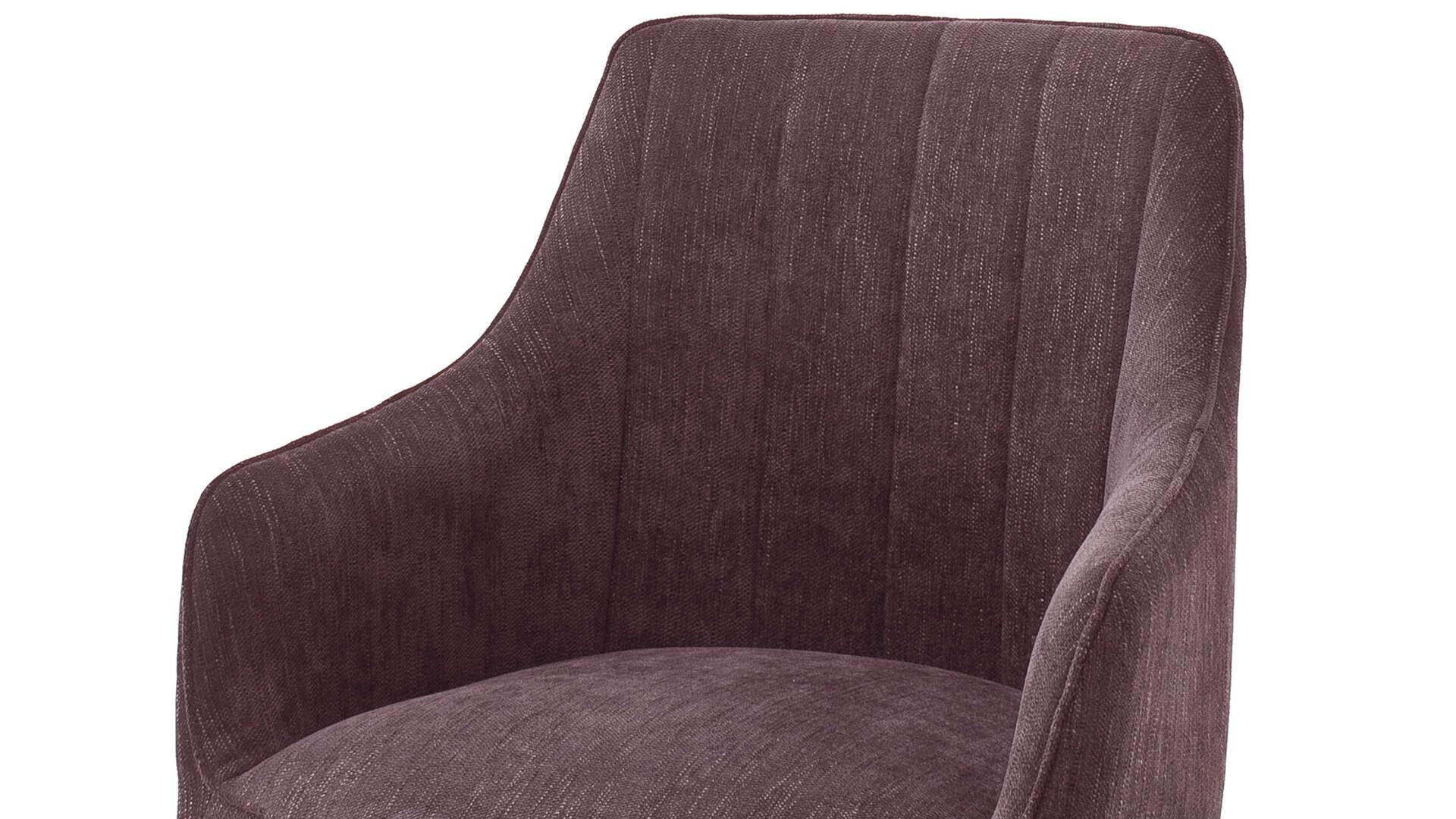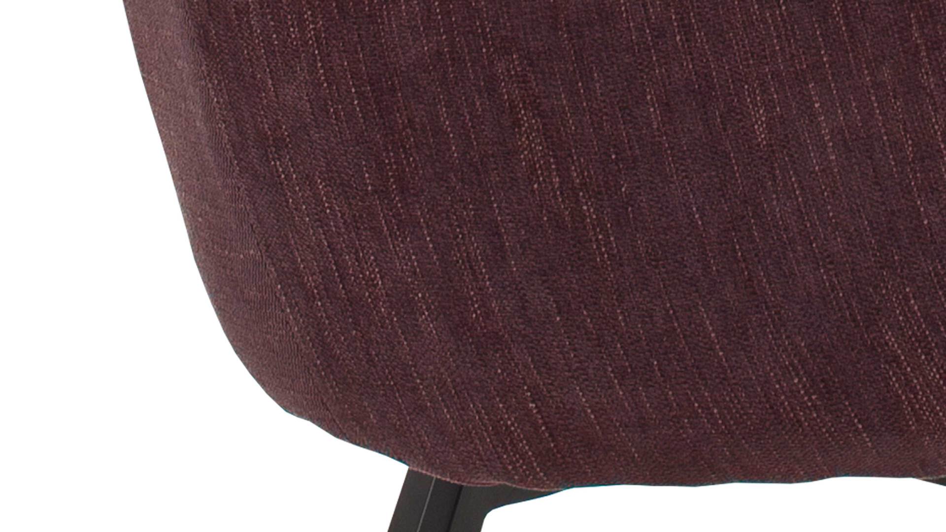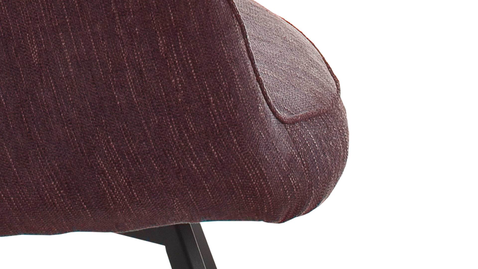 Der Armlehnstuhl Sasselo kommt in einem ausdrucksstarken Design: Seine Sitzschale ist komplett mit einem Chenillebezug in tiefem Merlot umhüllt. Entlang aller Kanten verstärkt Keder den Stuhl, während die Rückenlehne hübsche Steppnähte mitbringt. Getragen wird der Drehsessel von einem schwarz lackierten und konisch zulaufenden Vierkantrohrgestell.