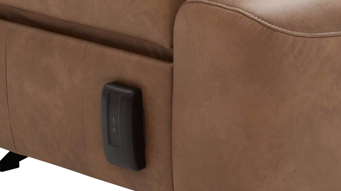 In trendigem Anthrazit gehalten, harmoniert er mit jeder Stoff- oder Lederfarbe, in der Sie die Couch bestellen können. Dank des Akkus sind Sie nicht auf eine nahegelegene Steckdose angewiesen. Er ist zur außenliegenden Montage vorgesehen und wird inklusive Ladestation geliefert.