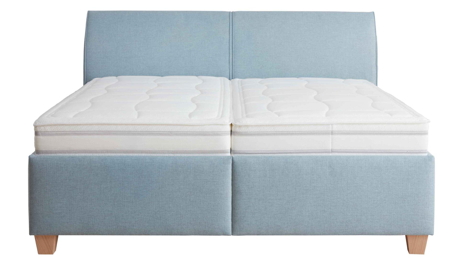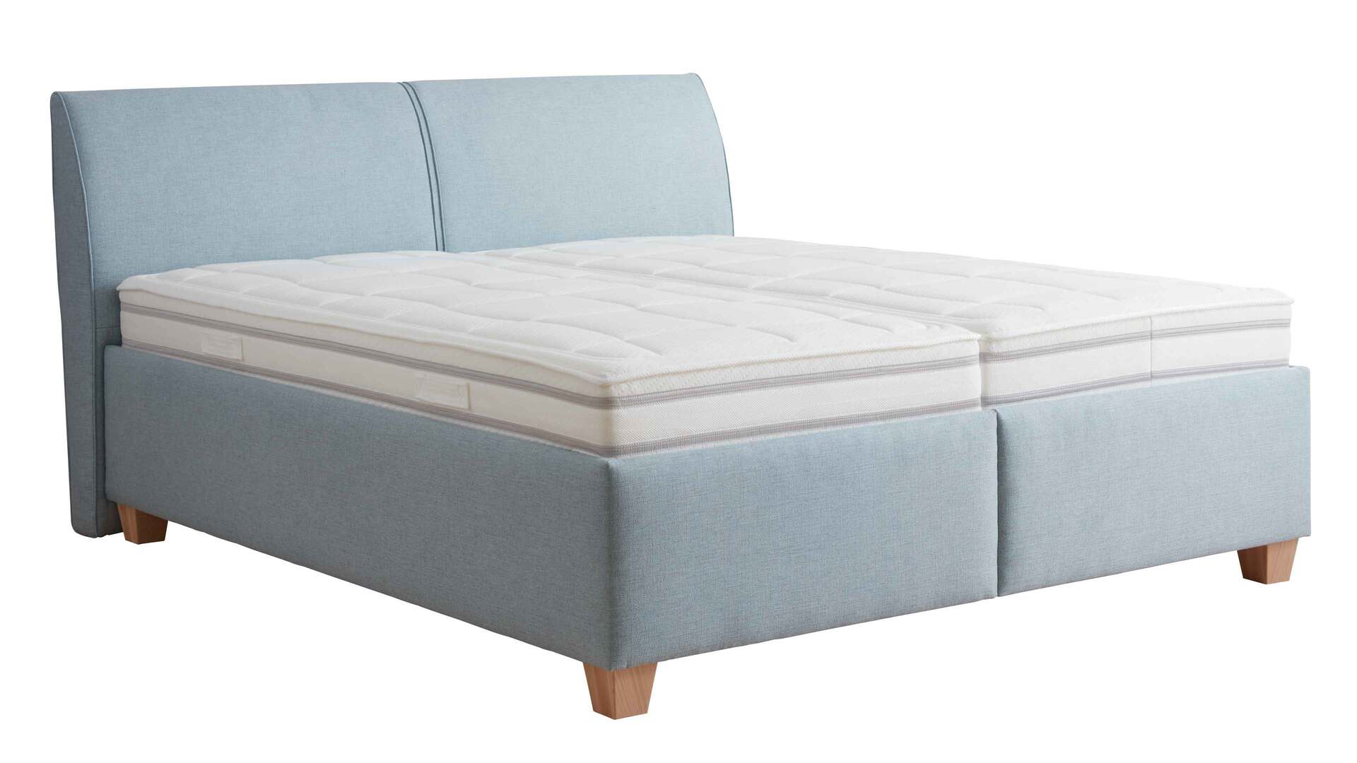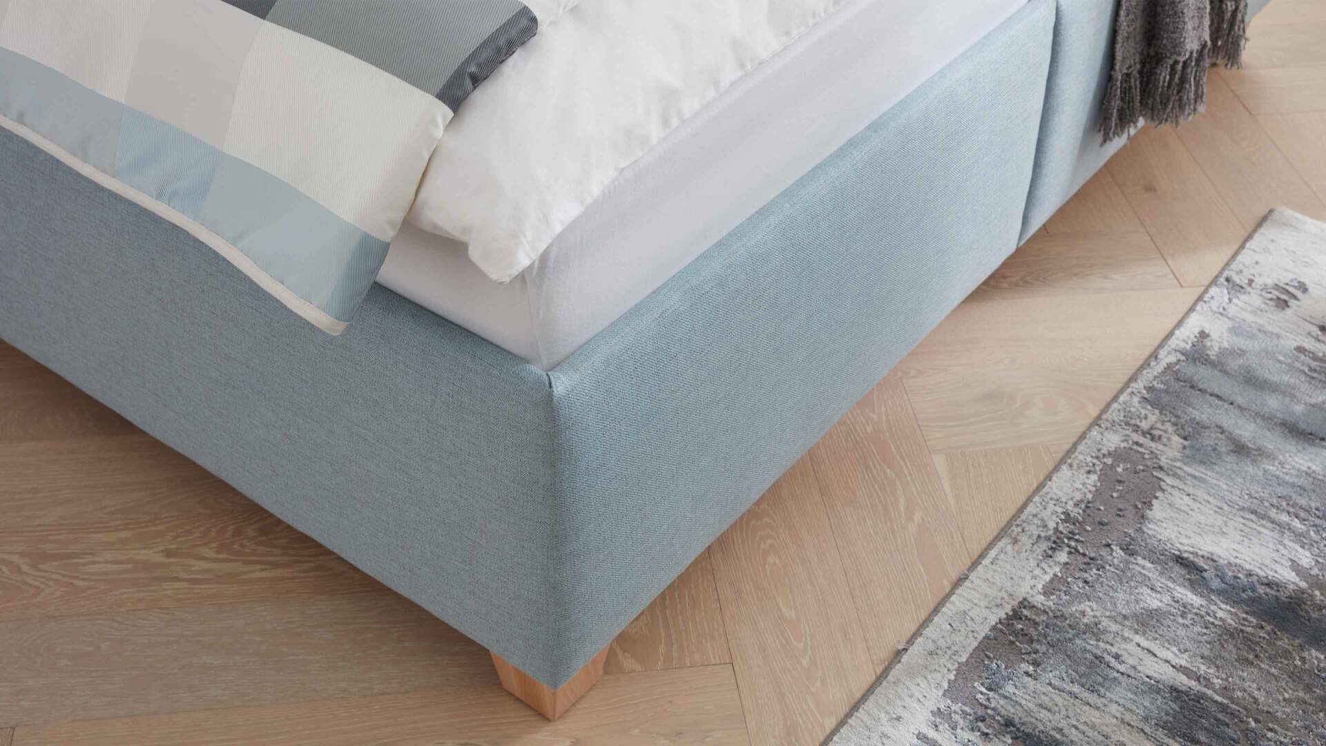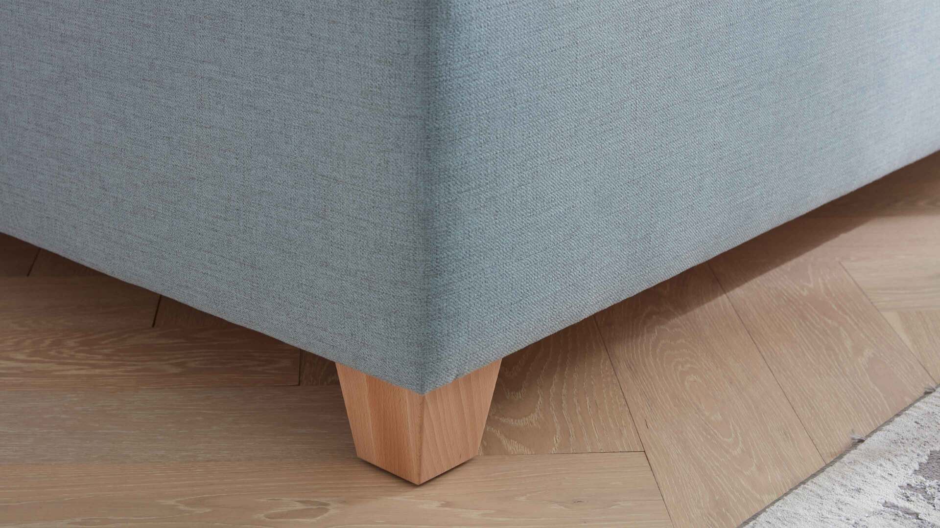 Das Comfortmaster Polsterbett OC-PB21004 kombiniert einen modernen eisblauen Flachgewebebezug mit lackierten Buchenholzfüßen. Es präsentiert sich stilvoll designt und bietet dank der hohen Qualität der einzelnen Bestandteile ausgeprägten Liegekomfort. Zu den Höhepunkten gehört das glatte Polsterkopfteil mit Kedernaht.