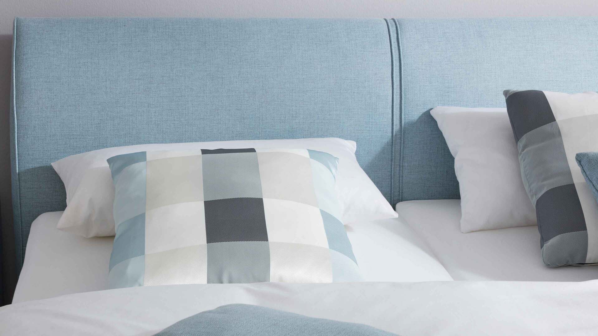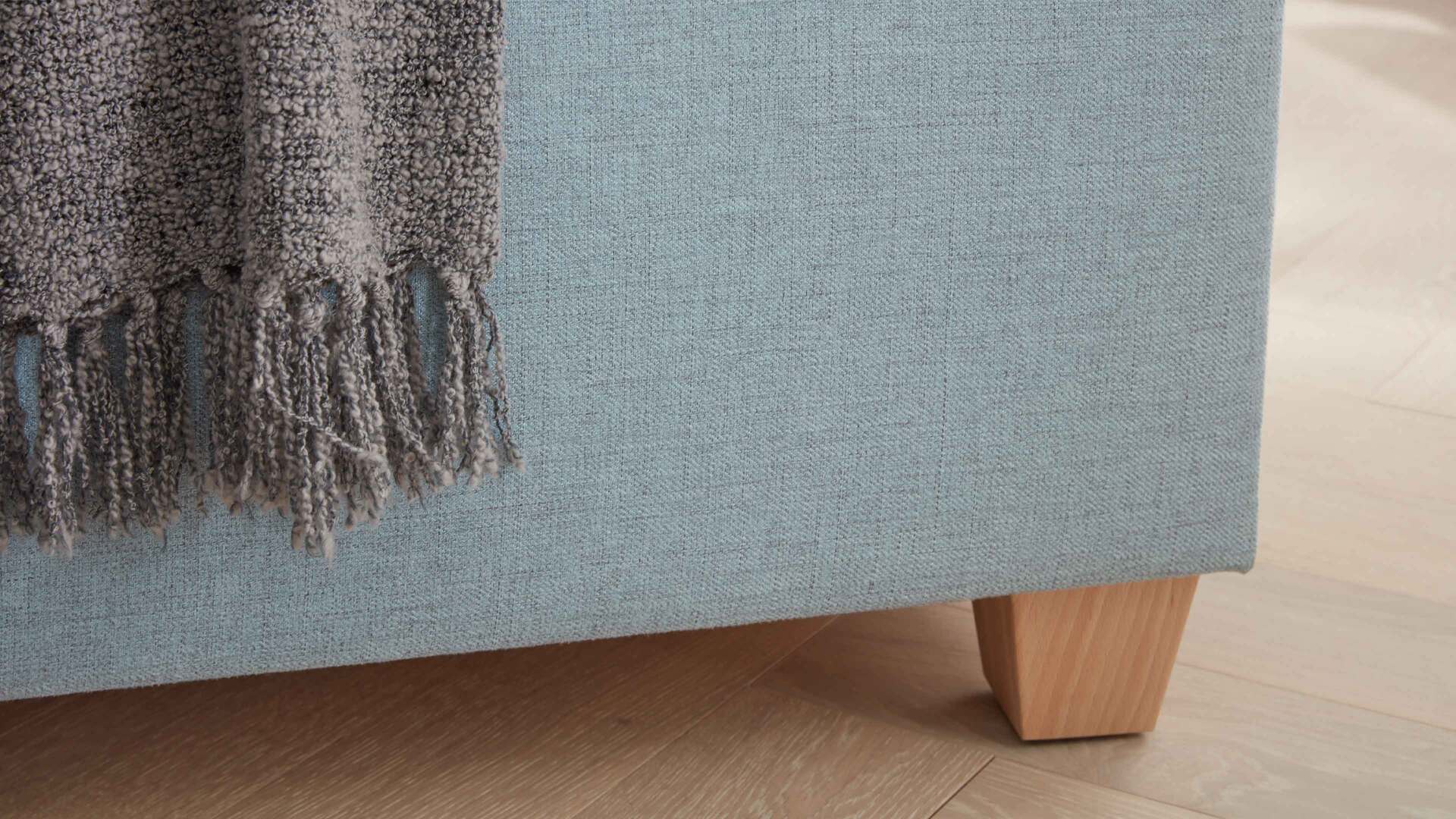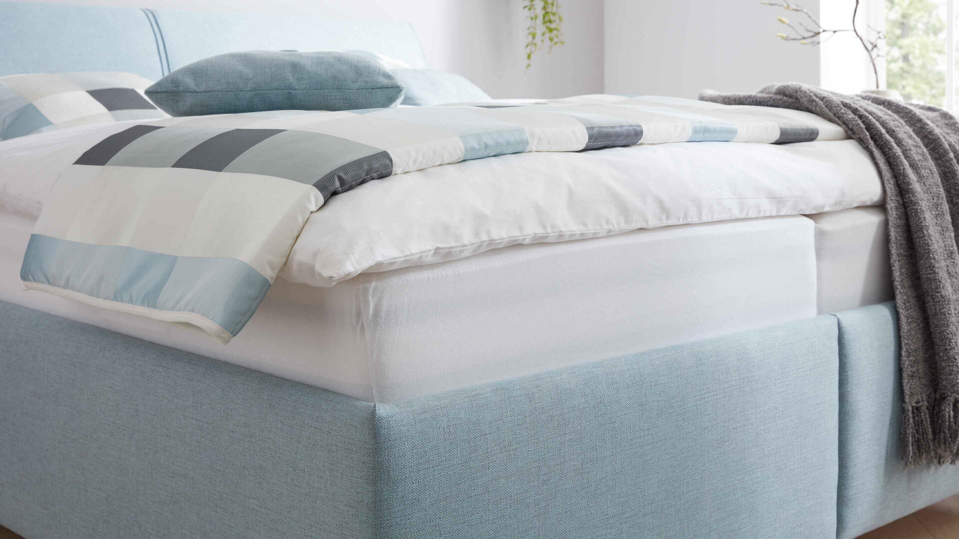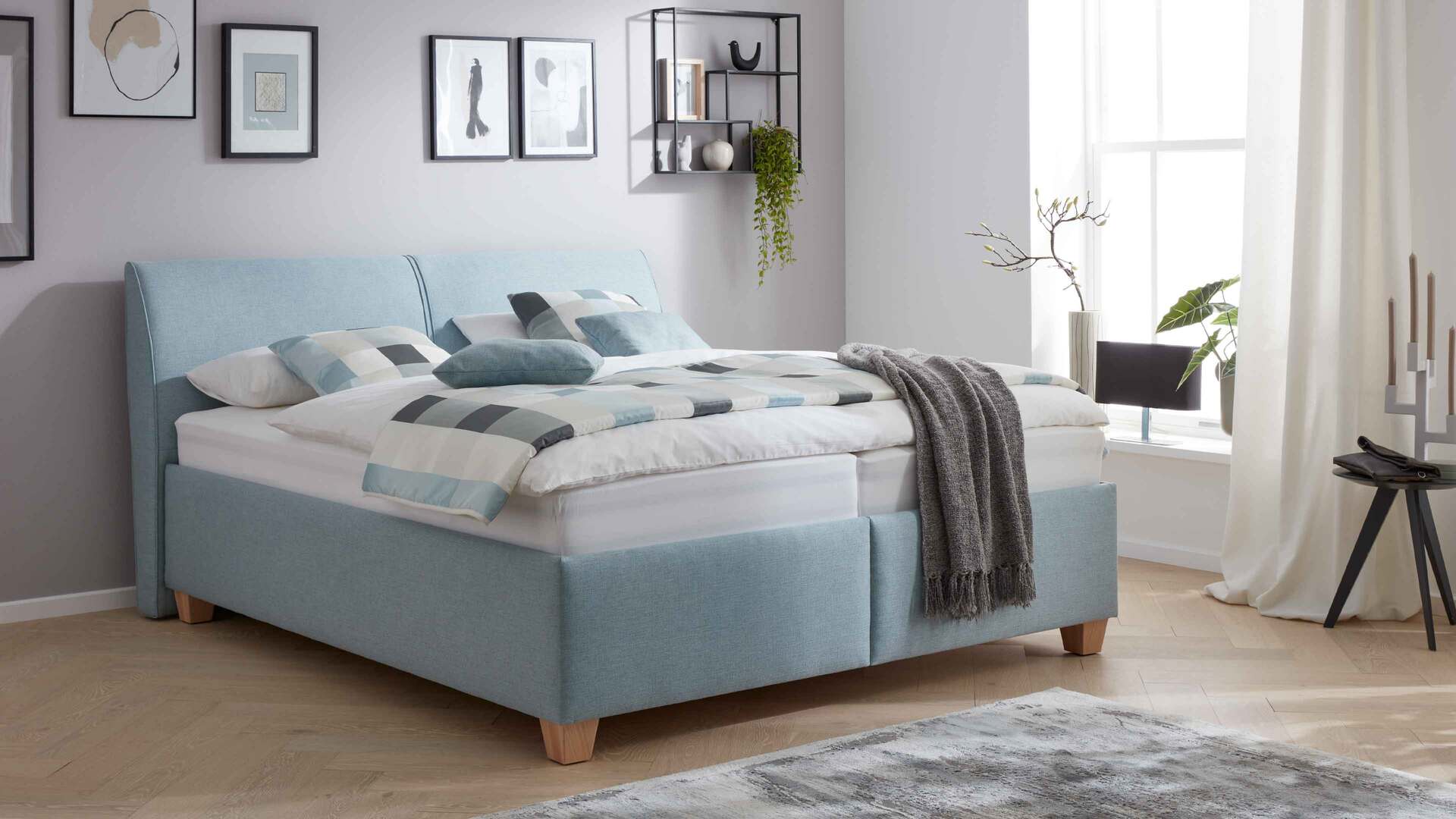 Das Comfortmaster Polsterbett OC-PB21004 kombiniert einen modernen eisblauen Flachgewebebezug mit lackierten Buchenholzfüßen. Es präsentiert sich stilvoll designt und bietet dank der hohen Qualität der einzelnen Bestandteile ausgeprägten Liegekomfort. Zu den Höhepunkten gehört das glatte Polsterkopfteil mit Kedernaht.