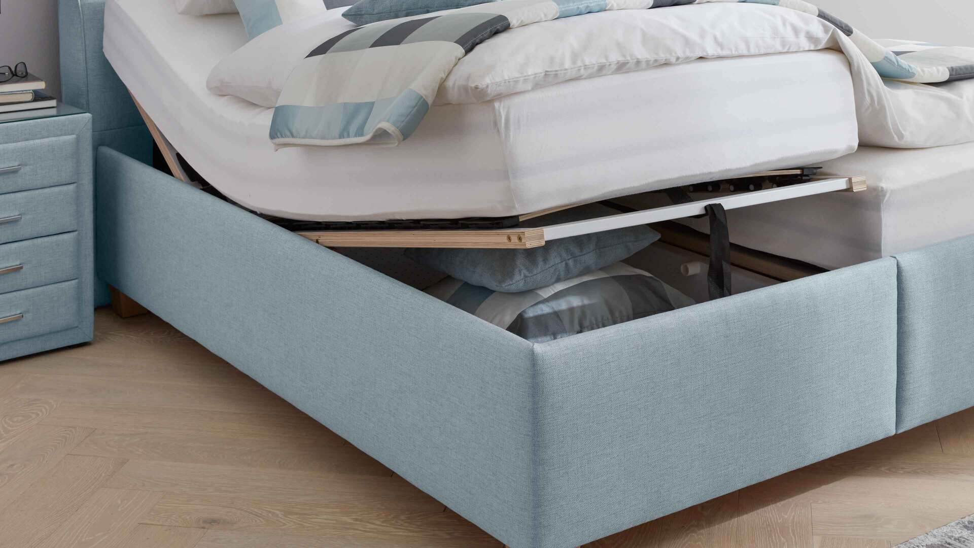 | Verstellbarkeit und Funktion: | Bettkasten, Gasdruckfeder, Kopfteilverstellung, abnehmbarer Bezug, aufklappbar, manuell verstellbar |