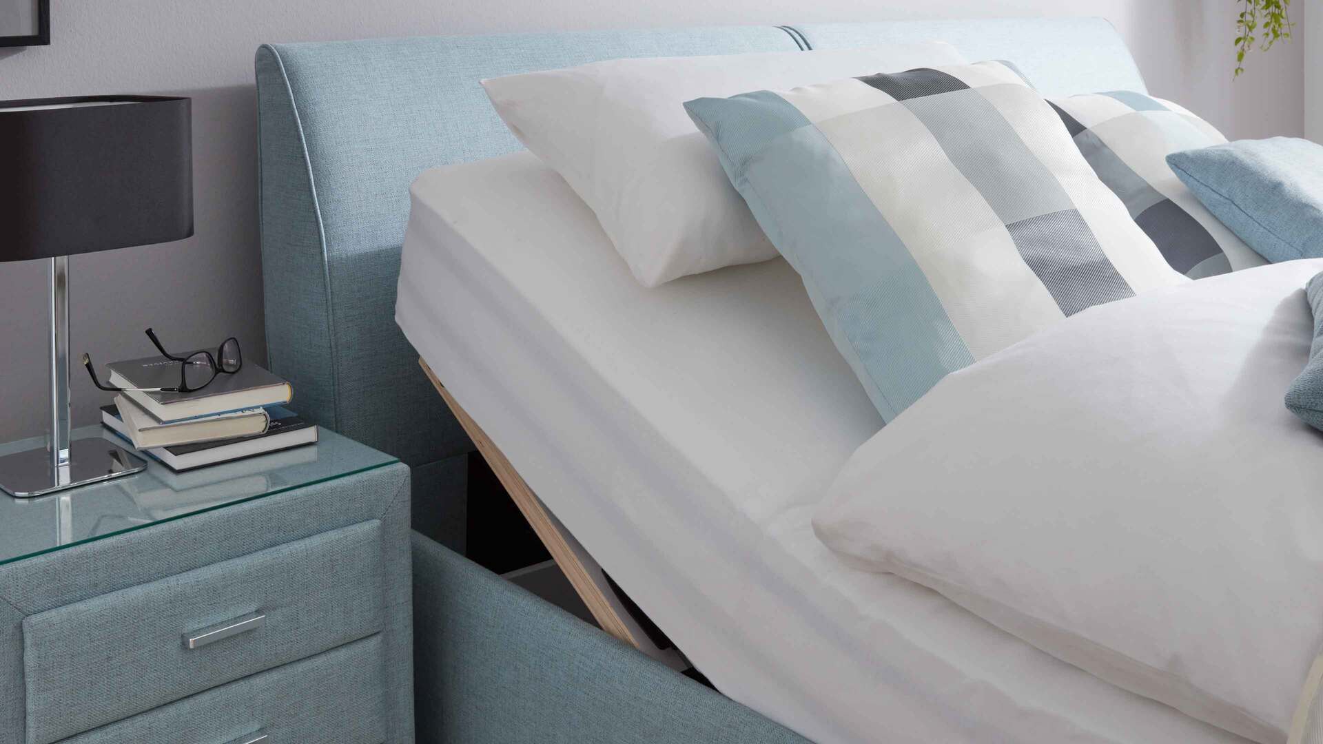 Die zwei Lattenrahmen LR26 weisen jeweils 26 flexibel gelagerte Federholzleisten auf. Funktional begeistern die vierfach verstellbaren Kopfteile sowie die aufklappbaren Fußteile mit Stauraum. Die zwei Bettkästen sind mittels Luxus-Gasdruckfeder von vorn zu öffnen. Sie überzeugen mit der gelochten Bodenplatte für eine optimale Luftzirkulation und der Abdeckleiste, die als effektiver Staubschutz fungiert.