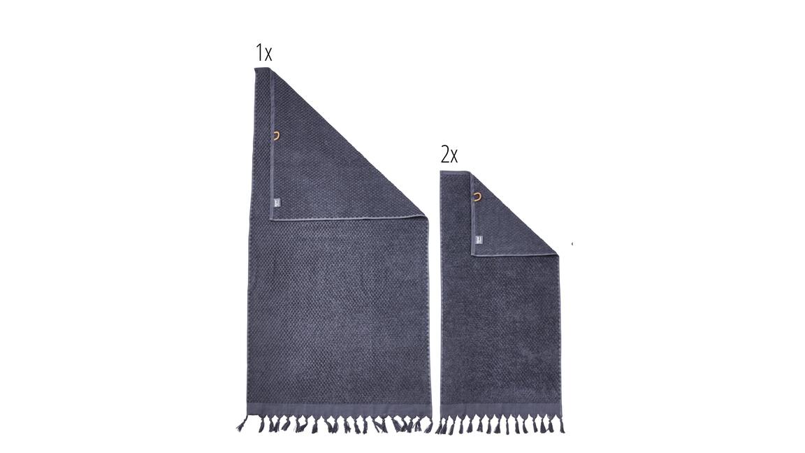 Aus diesem Grund sollten Sie jetzt einen Blick auf das anthrazitfarbene done.® Handtuch-Set Provence Honeycomb werfen. Im Set enthalten sind drei Baumwolltücher (500 gr/m² Walkfrottier) im dekorativen Honigwaben-Design. Sie erhalten nicht nur ein Duschhandtuch mit Maßen von ca. 70 x 140 cm (BxL), sondern auch zwei farblich passende Handtücher, die Maße von ca. 50 x 100 cm (BxL) aufweisen.