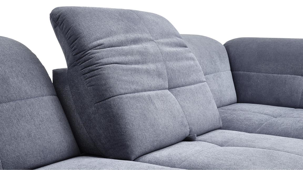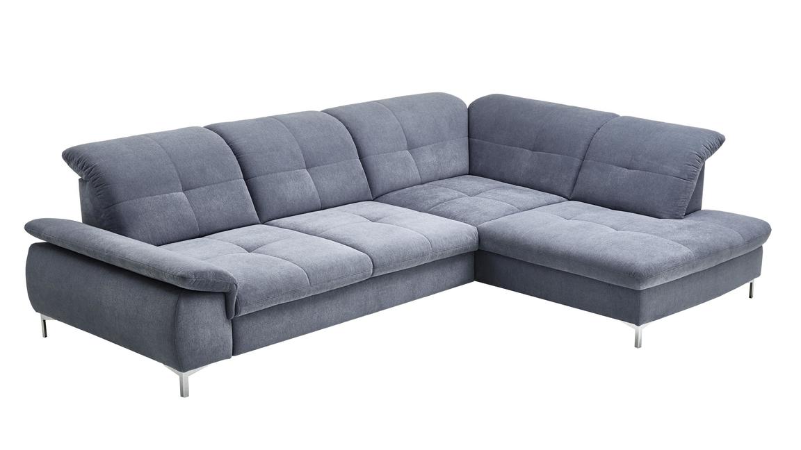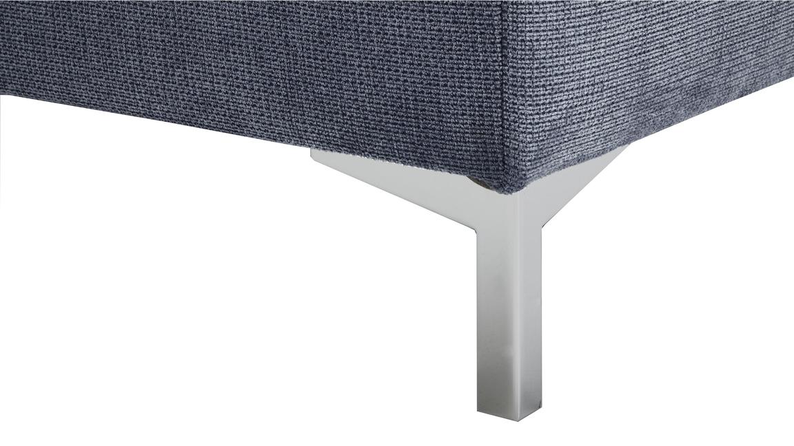 Die qualitativ hochwertige Eckkombination begeistert durch erstklassige Materialien und ansprechende Designmerkmale. Als Basis fungieren verchromte Metallfüße - sie schaffen die nötige Stabilität. Der Korpus ist mit blaugrauem Stoff bezogen, der dem Ecksofa eine besonders elegante Ausstrahlung verleiht. Einen stilvollen Akzent setzen die Steppnähte auf der Sitzfläche.