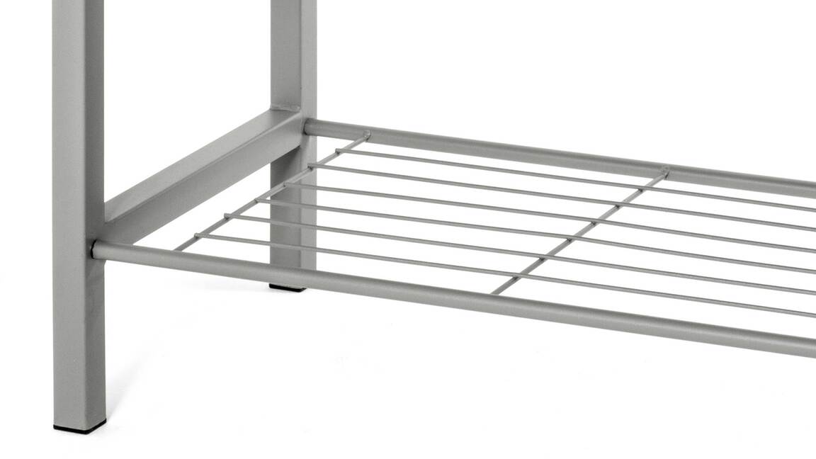 Eine weitere Besonderheit: Das Flurmöbel verfügt über einen stabilen Gitterboden, der als Schuhablage genutzt werden kann. Stiefeletten, Pumps, aber auch Hausschuhe lassen sich dank dieser Garderobenbank ordentlich und griffbereit verstauen. Kombinieren Sie Ihre neue Schuhbank mit einer farblich passenden Wandgarderobe und einer Kombikommode, um zusätzlichen Stauraum zu schaffen. Beachten Sie bitte, dass Sie diese Garderobenbank auch mit einem weißen Sitzpolster bestellen können.