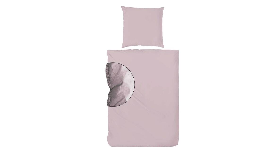 Das altrosafarbene Bettwäsche-Set aus Renforce-Baumwolle kommt in Stone Washed-Optik daher. Das mittelfeine strapazierfähige Gewebe verfügt über eine ausgesprochen angenehme Haptik. Die temperaturausgleichende Wirkung ist ein weiterer Pluspunkt dieser schlichten Bettwäsche. Der weiche, angenehme Griff wird ergänzt durch eine glatte Oberfläche beider Wäschestücke.
