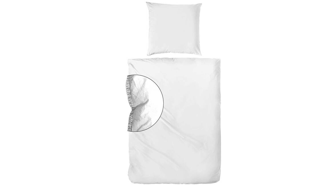 Das weiße Bettwäsche-Set in Übergröße aus Renforce-Baumwolle kommt in Stone Washed-Optik daher. Das mittelfeine strapazierfähige Gewebe verfügt über eine ausgesprochen angenehme Haptik. Die temperaturausgleichende Wirkung ist ein weiterer Pluspunkt dieser schlichten Bettwäsche. Der weiche, angenehme Griff wird ergänzt durch eine glatte Oberfläche der Wäschestücke.