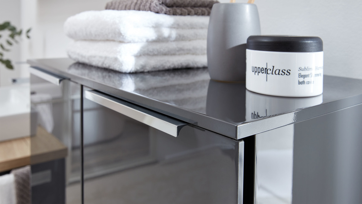 Insgesamt stehen sechs Ablageplattendekore und vier Qsolid-Ablageplattendekore zur Wahl. Die Platte passt zum Hängeschrank 979033-0200-030-108.