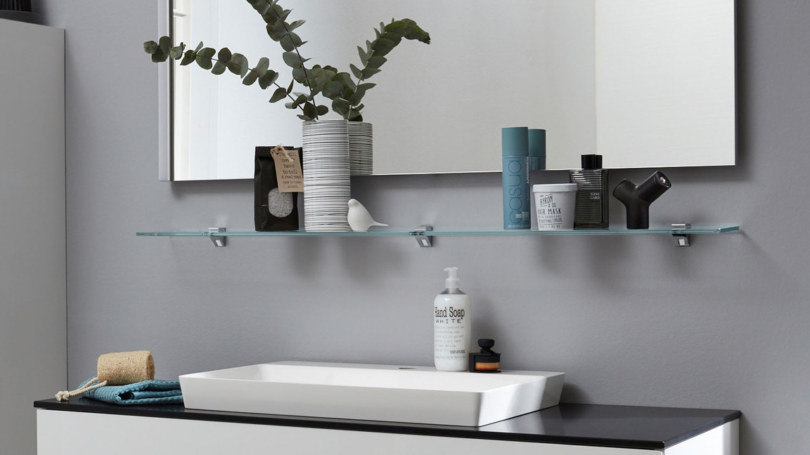 Es ist aus widerstandsfähigem und edlem Klarglas hergestellt. Im Lieferumfang finden Sie auch die zur Montage erforderlichen Metallhalterungen. Diese sorgen für die nötige Stabilität des Glasregals. Die Maße des erstklassigen Badboards belaufen sich auf ca. 120 x 1 x 13 cm (LxHxT). Alternativ ist es in drei weiteren Größen erhältlich.