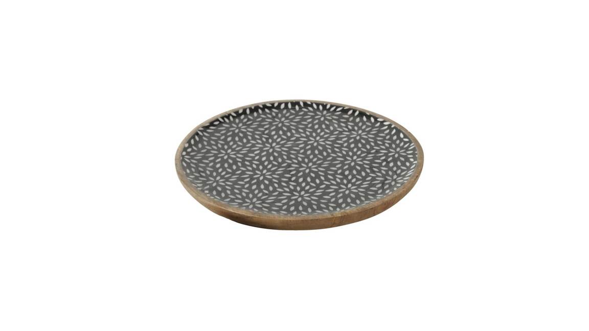 Interliving BEST BUDDYS! Dekoteller Salina | dunkelgraue Nutzfläche mit Offwhite-Muster | Mangoholz | Durchmesser ca. 16 cm | Höhe ca. 2 cm | in drei Größen und als Set erhältlich