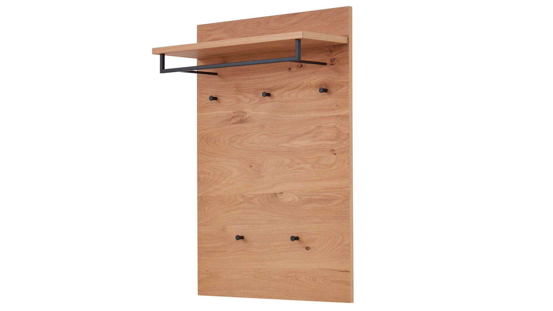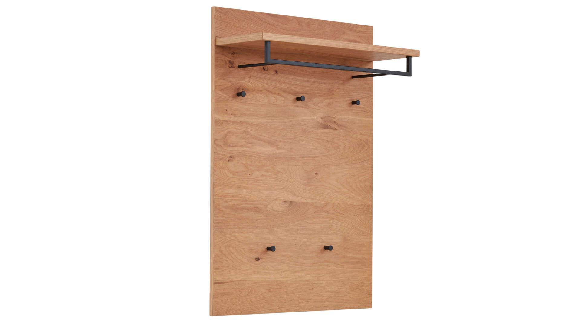 Diese Merkmale kennzeichnen die Wandgarderobe 821 der Interliving Garderoben Serie 6005. Sie präsentiert sich komplett in widerstandsfähigem Balkeneichefurnier. Stilvoll und robust abgerundet wird das Garderobenpaneel durch die verschiedenen metallenen Details im trendigen Farbton Anthrazit.