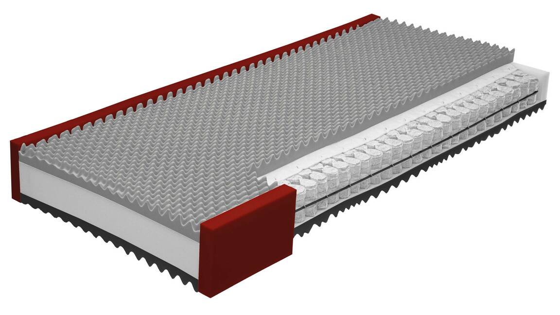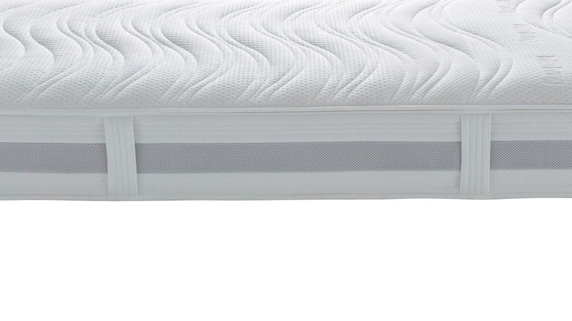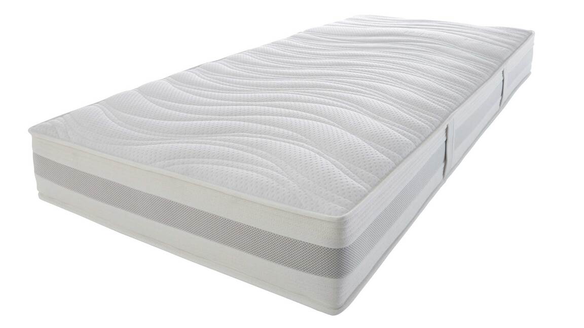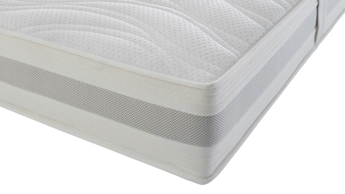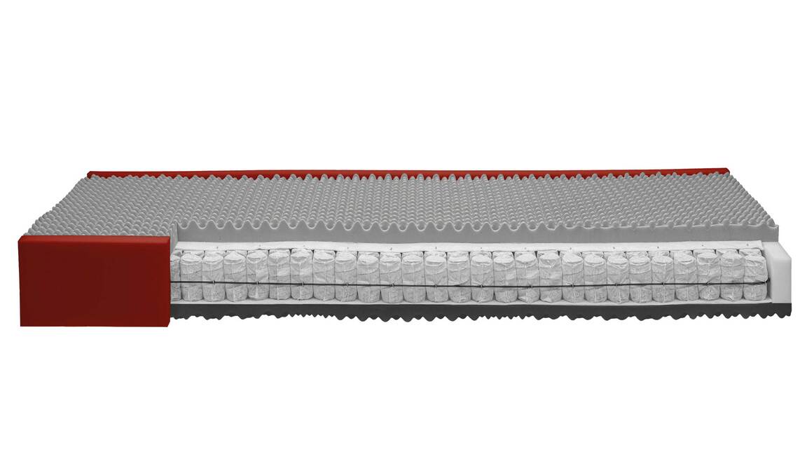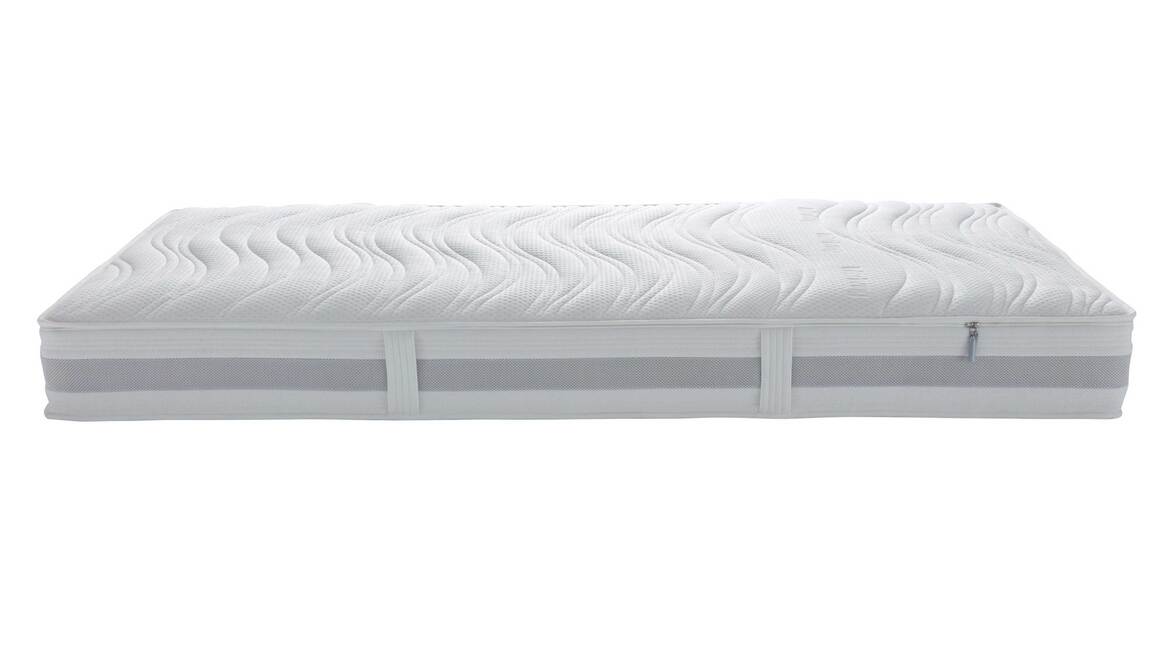 Insgesamt steht die Federkernmatratze in zehn Größen und Sondermaßen sowie in drei Härtegraden zur Wahl. Dank des ergonomischen 7-Zonen-Kerns mit 1000 Taschenfedern (auf ca. 100 x 200 cm) bietet die top verarbeitete Matratze eine punktgenaue Unterstützung aller Körperregionen. Die Oberseite mit GELAX-Schaumauflage sorgt für mehr Punktelastizität. Dieser Effekt wird durch die Unterseite mit AQUAPUR®-Schaum unterstützt. Beim Aufstehen erweist sich die seitliche Sitzkantenverstärkung als besonders vorteilhaft.