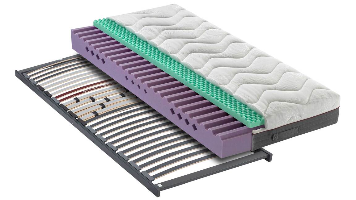 Perfekt abgerundet wird die Schaumkernmatratze durch die ca. 6 cm dicke aerDURA®-Kaltschaumauflage (RG42) auf der Oberseite. Sie sorgt für eine angenehme Anschmiegsamkeit und stellt überdies die dauerhafte körperorientierte Unterstützung sicher.