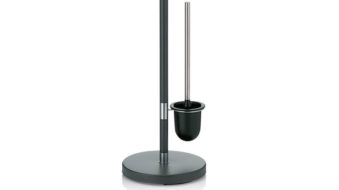 Für einen festen Stand sorgt die kreisrunde Bodenplatte mit einem Durchmesser von ca. 25 cm, auf welcher die Stange mit den Halterungen für das Toilettenpapier und für die WC-Bürste steht. Mit einer Höhe von ca. 77 cm findet die multifunktionale Garnitur in jedem Bad den richtigen Platz. Besonders praktisch ist, dass Sie für dieses Modell auch einen passenden Ersatzbürstenkopf im Onlineshop finden.