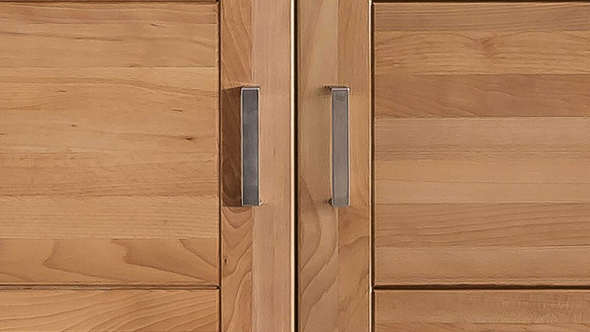 Durch den warmen, klassisch holzfarben belassenen Ton schafft der Schrank ein überaus gemütliches Ambiente in Ihrem Schlafzimmer. Abgerundet wird der Drehtürenschrank durch die metallenen Griffe, die sich einerseits abheben und Akzente setzen, andererseits aber auch perfekt ins Gesamtbild einfügen und für eine harmonische Optik sorgen.