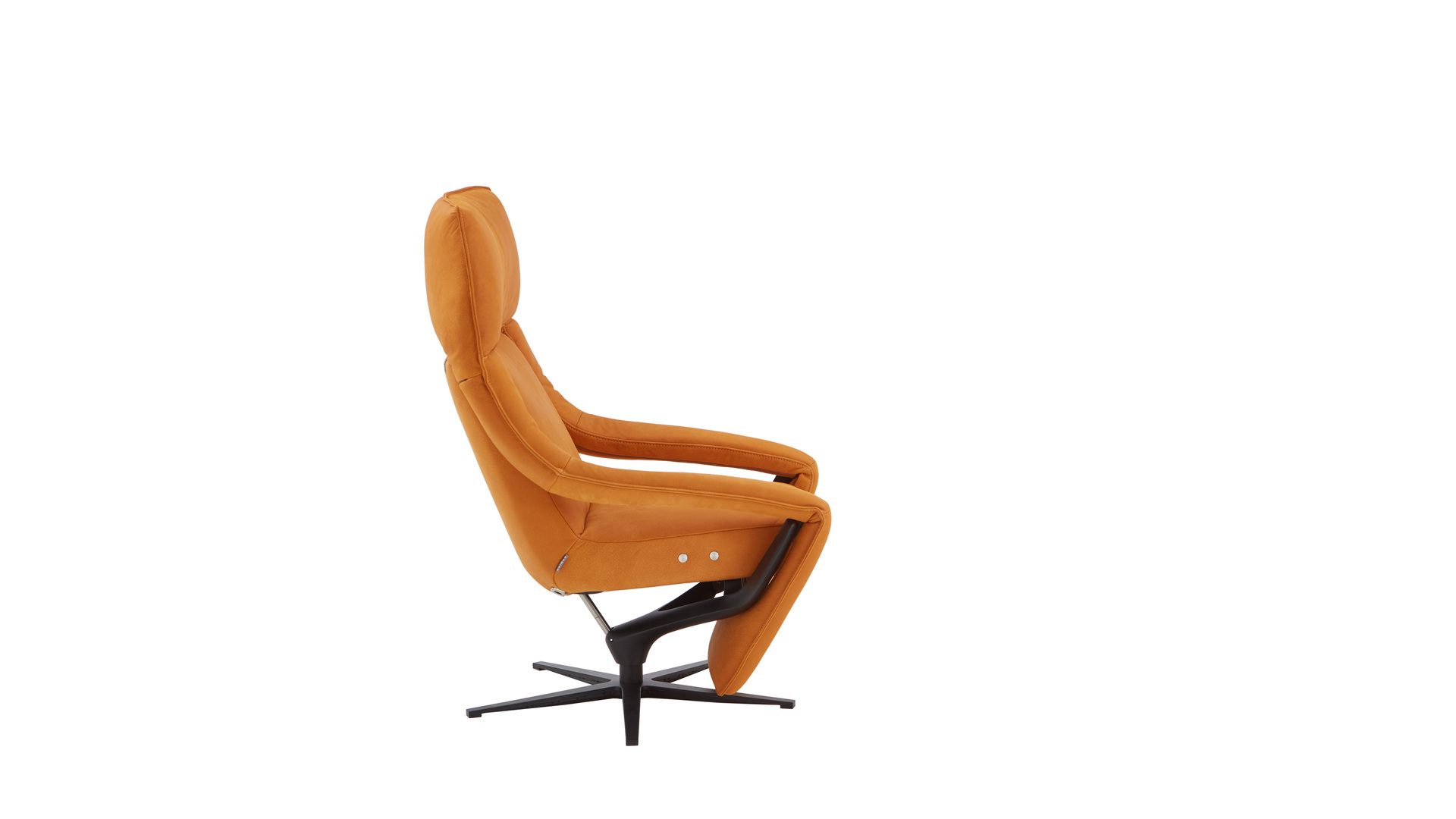 Der Einzelsessel verfügt über eine manuelle Kopfteilverstellung in verschiedenen Positionen. Durch den Rasterbeschlag kann das Kopfteil einfach in die gewünschte Position gebracht werden. Die ergonomischen mitlauffenden Armlehnen passen sich der jeweiligen Sitz- oder Liegeposition automatisch an und sorgen für eine optimale Entspannung.
