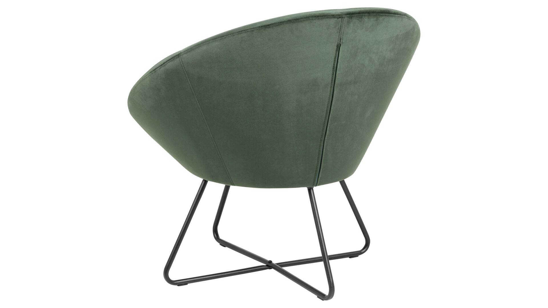 Dieser Loungestuhl zeichnet sich durch sein edles, modernes Design aus und bietet überdies hohen Sitzkomfort. Ein robustes, klassisch-mattschwarz pulverbeschichtetes Metallgestell sorgt für die nötige Standfestigkeit. Den optischen Höhepunkt des Einzelsessels bildet der waldgrüne Samtbezug, der zum einen noble Extravaganz und zum anderen jede Menge Gemütlichkeit ausstrahlt.