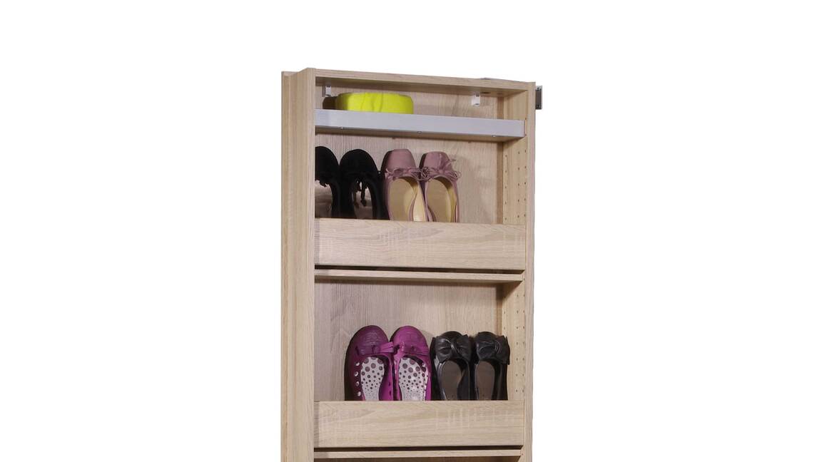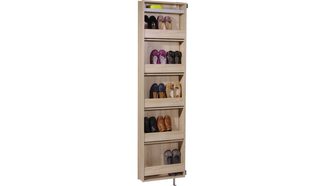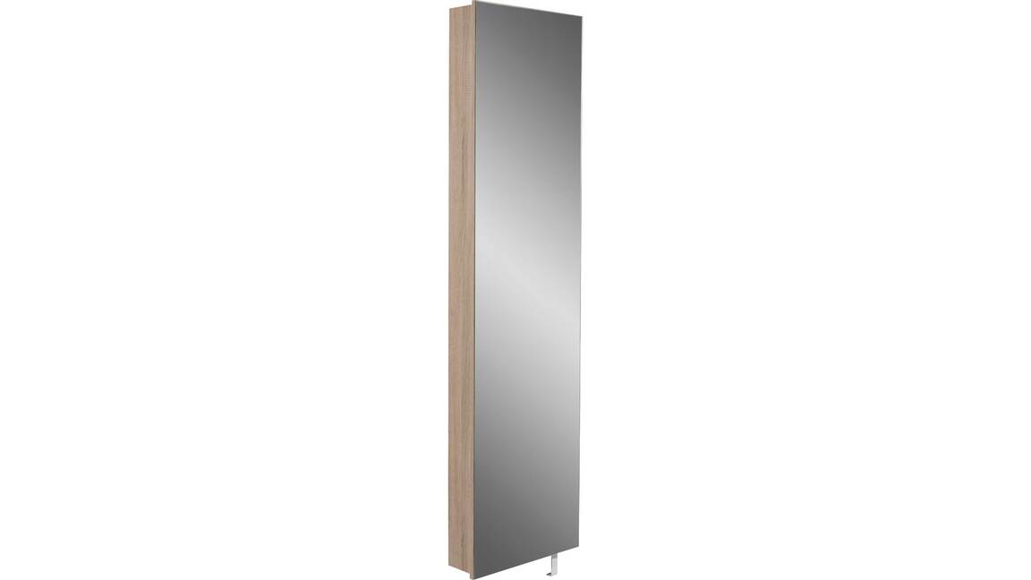 Highlight des Schuhschrankes ist die Spiegelfront, in der Sie jeden Tag Ihre Frisur und Ihr Outfit überprüfen können. Die fünf Schuhfächer auf der Rückseite bieten Platz für ca. zehn Paar Schuhe. Mit seinen praktischen Maßen von ca. 50 x 195 x 18 cm (BxHxT) passt der Spiegelschrank hervorragend in Ihren einladenden Flur.