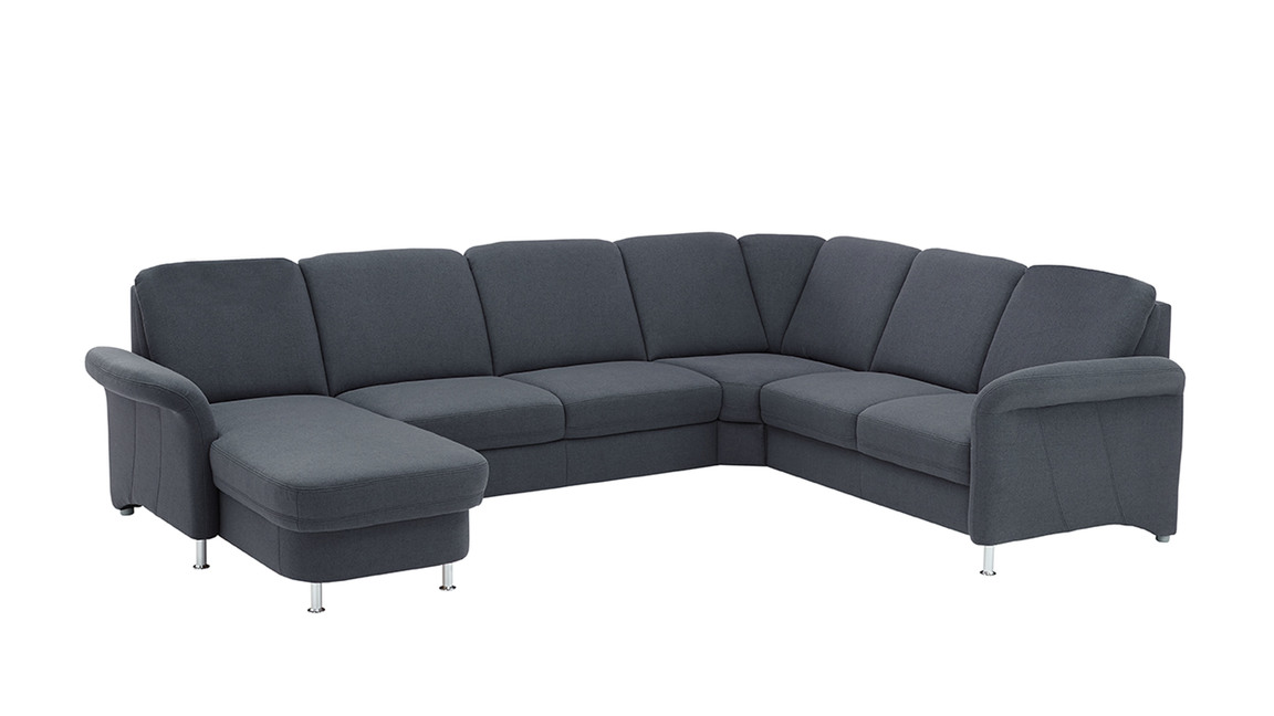 Dank der soften Kaltschaumpolsterung auf einer stützenden Wellenunterfederung im Sitz und den ebenfalls mit Kaltschaum gepolsterten Rückenlehnen gewährleistet die Couchlandschaft hohen Komfort. Sie setzt sich aus dem Canapé CanL mit Armlehne links, dem Zweisitzer 2EL ohne Armlehnen, dem Eckelement PER und dem Zweisitzer 2R mit Armlehne rechts zusammen.