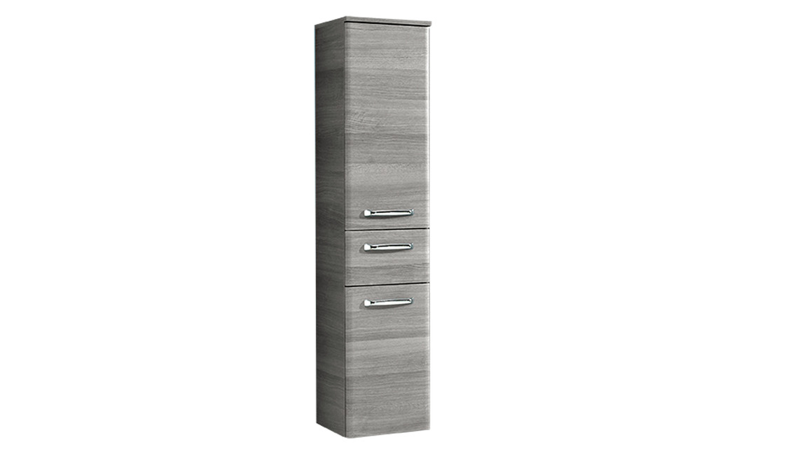 Der Midischrank hat eine Größe von ca. 30 x 141 x 33 cm (BxHxT) und kann sowohl hängend als auch stehend montiert werden. Die Türdämpfer sorgen für ein leises und sanftes Schließen. Für eine perfekte Kombination können Sie den Schrank mit Waschtischen aus Mineralmarmor, Keramik oder Glas und Spiegelschränken kombinieren.