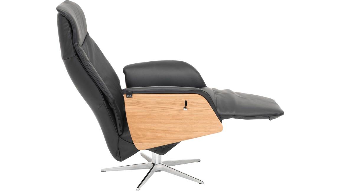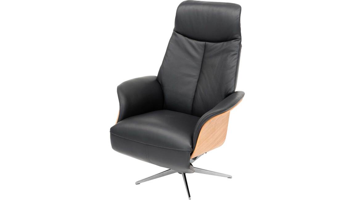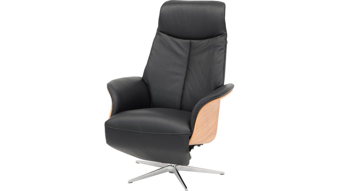 Sie sind auf der Suche nach einem schönen und sehr bequemen Sessel? Dann ist dieser Relaxsessel bzw. Drehsessel mit einem strapazierfähigen schwarzen Lederbezug und einem modernen Sternfuß aus gebürstetem Edelstahl genau das richtige Sitzmöbel für Sie. Nutzen Sie die manuell verstellbare Relaxfunktion und stellen Sie den Ledersessel so ein, dass Sie komfortabel lesen und fernsehen können.