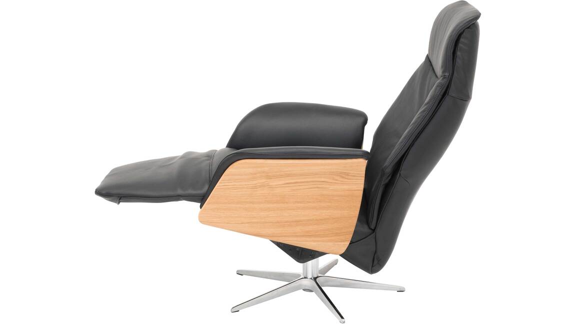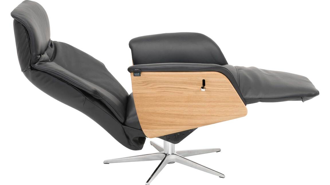 Die integrierte Fußstütze und die drei Ergonomiegrößen sind ein zusätzliches Plus an Komfort. Das Polstermöbel hat die Maße von ca. 84 x 119 x 84 cm (BxHxT) und steht idealerweise neben Ihrem Sofa oder der Bücherwand. Zudem lässt es sich um 360 Grad drehen. Dieser Drehsessel ist in vielen Stoff-, Leder- und Holzfarben lieferbar und hat drei verschiedene Fußvarianten. Die Armlehne gibt es wahlweise in Holz, Stoff oder Leder.
