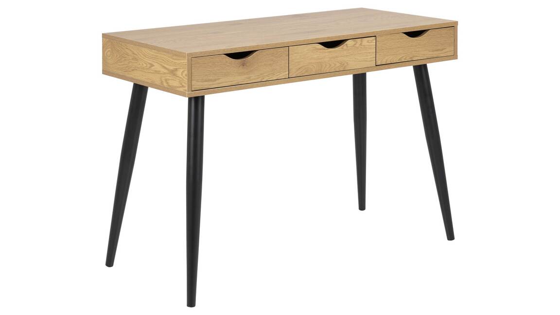 Der schicke Arbeitstisch wertet Ihr Home Office optisch enorm auf und bietet Ihnen dazu noch praktischen Stauraum: In den drei Schubladen mit grifflosen Fronten können Sie verschiedene Gegenstände aufbewahren, die Sie in Ihrem Arbeitsalltag griffbereit haben wollen. Auf der Tischplatte lässt sich rund um einen Laptop auch noch diverses Zubehör platzieren, beispielsweise eine Tischlampe, Stifte oder auch ein inspirierendes Dekoelement, etwa ein Foto Ihrer Lieben.
